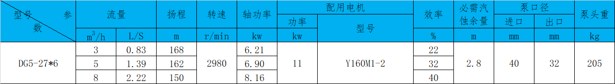 DG5-27*8型锅炉给水泵流量扬程多少?
