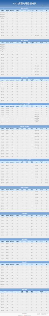 AMD桌面处理器规格表