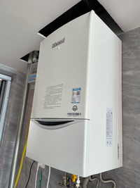 装修地暖安装,燃气壁挂炉带生活热水循环泵,让生活热水龙头即开即热