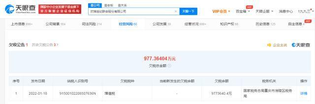 欢瑞世纪拖欠977万税款